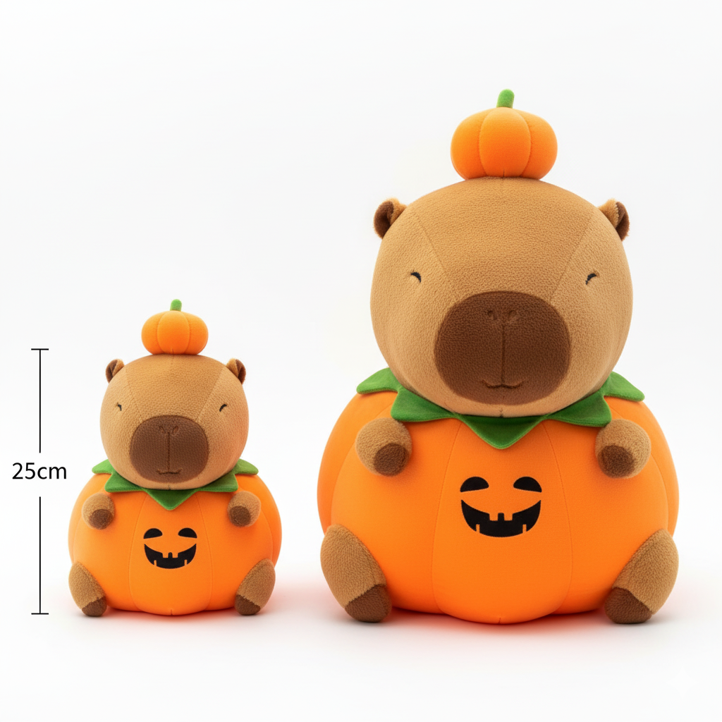 ¡Dale un toque de sofisticación a tu colección con este adorable y elegante peluche de Capibara! Inspirado en una calabaza Halloween.